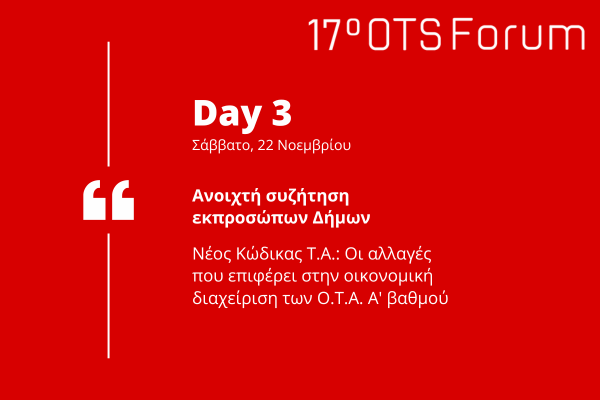 Στο 14ο OTS forum, στις 10-12 Νοεμβρίου, στην Αλεξανδρούπολη, σε ειδική ενότητα, θα παρουσιαστούν Ευρήματα Κατασταλτικού Ελέγχου Ελεγκτικού Συνεδρίου σε Ο.Τ.Α. & Ν.Π.